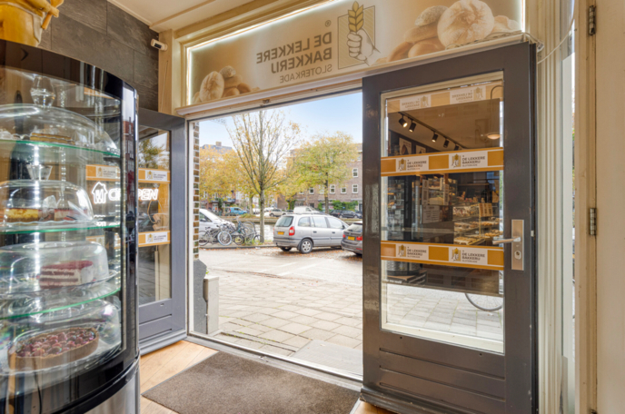 Deze charmante bakkerij is gelegen aan de Sloterkade in Amsterdam Zuid. De zaak is gelegen in een bedrijvige omgeving met o.a. het Vondelpark en diverse grote winkels. met een constante stroom aan buurtbewoners en passanten.